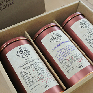 ブレンド中煎り ブレンド深煎り ブルーマウンテン No.1 ブレンドの違いを楽しめるのと同時に最高級ブルーマウンテンがセットになっています。タリアセンの味わいと世界が認める最高級品を楽しめます。